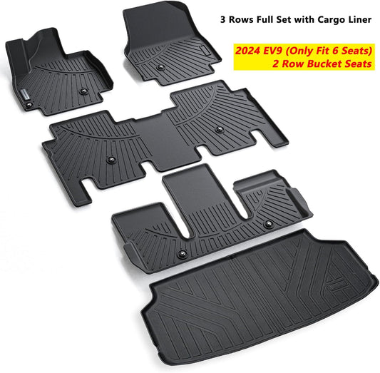 Floor Mats & Trunk Mat for KIA EV9 2024 2025 2026 6-Seats Version-2 Row Bucket Seats(Not Fit for 7-Seats), TPE All Weather Protection 3 Rows Full Set Car Floor Liners with Cargo Line