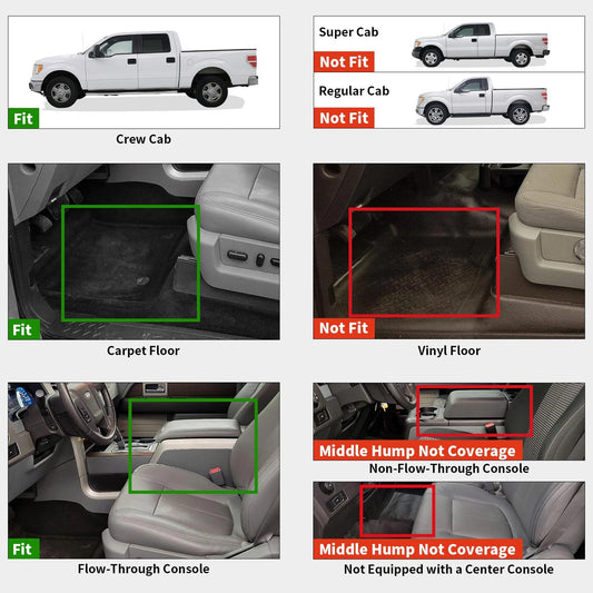 LASFIT Floor Mats for Ford F-150 2011-2014 SuperCrew Carpet Floor Front Row w/Flow-Through Console All Weather Protector TPE Truck Liners, 1st & 2nd Row, 3pcs Black