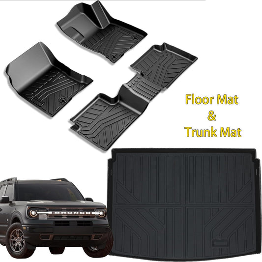 Floor Mats & Trunk Mat for 2021-2024 2025 Ford Bronco Sport Only Fit Sport Version(Non Hybrid) TPE All Weather Protection 2 Rows Car Floor Liners with Cargo Liners Accessories