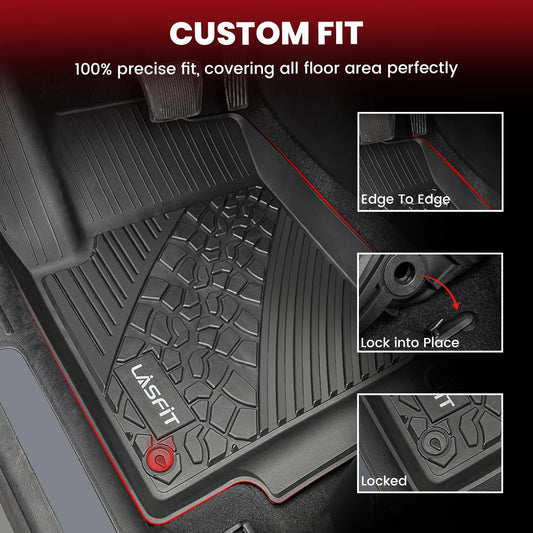 LASFIT Floor Mats for Jeep Wrangler JL 2018-2025 Unlimited 4 Door Gas/MHEV Type (Not Fit for JK or PHEV) All Weather TPE Custom Fit Car Mats Floor Liners 1st & 2nd Row, Black