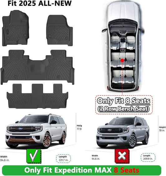 All-New 2025 SANBAN-AXE Floor Mats for 2025 Ford Expedition MAX - 8 Seat, TPE All Weather Protection 2 Rows Car Floor Liners - Only Fit 8 Seats(2 Row Bench Seat), Fit Expedition MAX