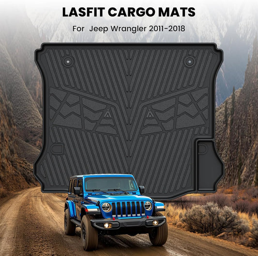 LASFIT Trunk Mat for Jeep Wrangler 2011-2018 JK Unlimited 4-Door (NOT for JL or 2-Door) All Weather TPE Custom Fit Cargo Mat Trunk Liner Cargo Liner, Black