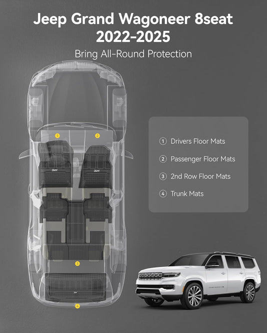 3W Floor Mats & Cargo Liner Fit for Jeep Grand Wagoneer 2022 2023 2024 2025 8 seat (Only Fit Wagoneer 8s), TPE Custom Fit Wagoneer Floor Liner for 1-3 Rows and Trunk Mats Full Set Car Accessories