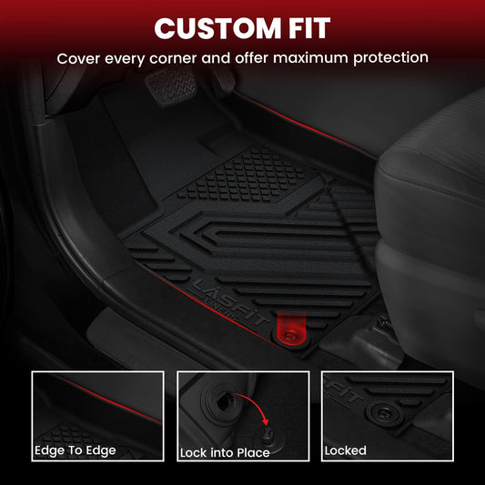 LASFIT Floor Mats for Toyota Tundra 2022-2025 Double Cab, Custom Fit All Weather Protection TPE Easy Clean Odorless Anti-Slip Floor Liners for Tundra 2022 2023 2024 2025 Front & Rear 2 Row Car Mats
