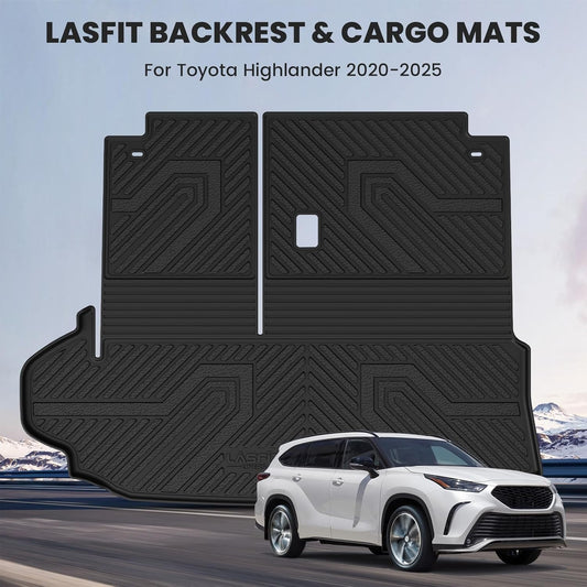 LASFIT Trunk Mat & Backrest Mat for Toyota Highlander 2020-2025 7&8 Seats(Not Fit with Subwoofer), All Weather TPE Custom Fit Cargo Liner for Highlander Accessories Rear Cargo Mat with Backrest Mat