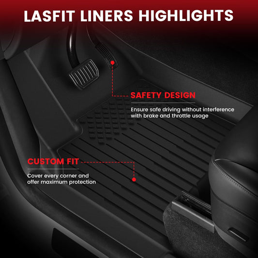 LASFIT Premium Extra Thick Floor Mats for Tesla Model Y Juniper 2025 2026 All Weather TPE Custom Fit Interior Accessories Front Rear Car Liner 1st & 2nd Rows Set, Black