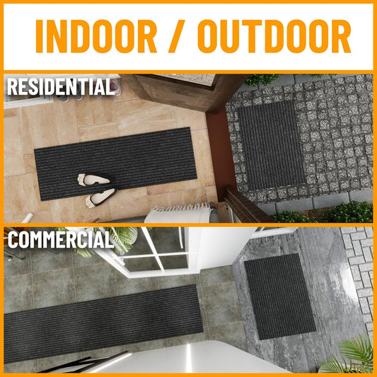 Ottomanson 2'7" x 31' Hallway Runner with Scraper Pile - Extra Durable Non-Slip Rug Mat for Indoor & Outdoor Use - Ideal for Kitchen, Entryway & Garage - High-Traffic Carpet, Gray
