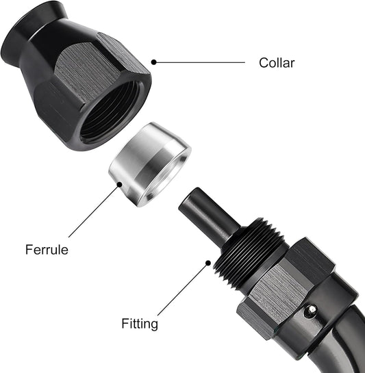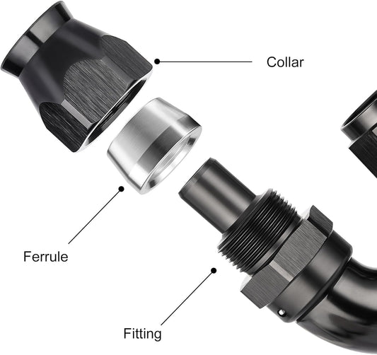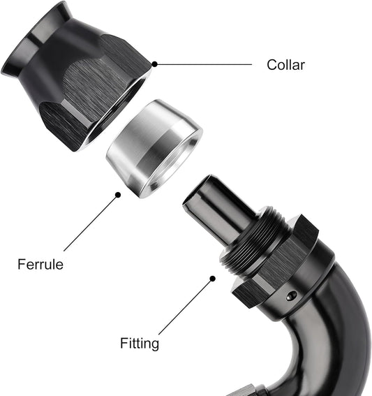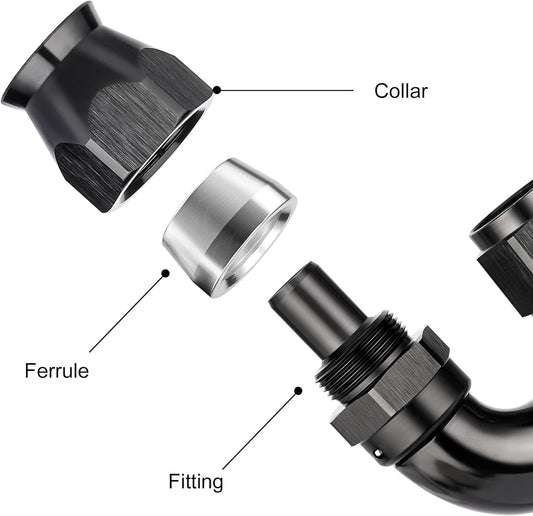 EVIL ENERGY 8AN 180 Degree PTFE One Piece Full Flow End Hose Fitting Aluminum Black