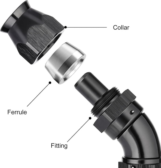 EVIL ENERGY 8AN 45 Degree PTFE One Piece Full Flow End Hose Fitting Aluminum Black
