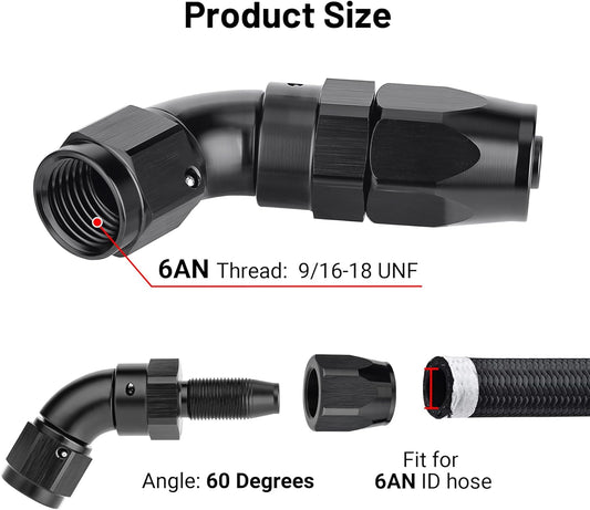 EVIL ENERGY 6AN 60 Degree One Piece Full Flow Hose End Fitting Swivel For CPE Braided Hose