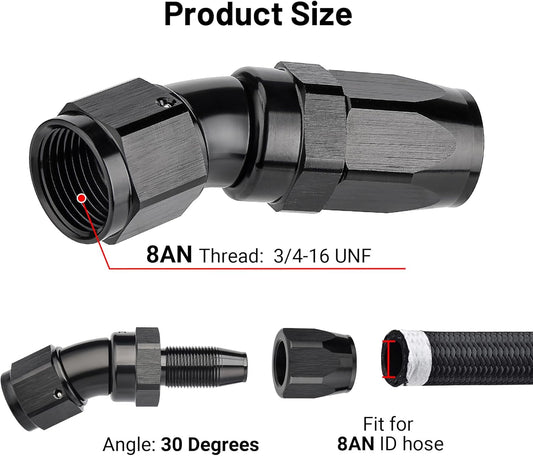 EVIL ENERGY 8AN 30 Degree One Piece Full Flow Hose End Fitting Swivel For CPE Braided Hose