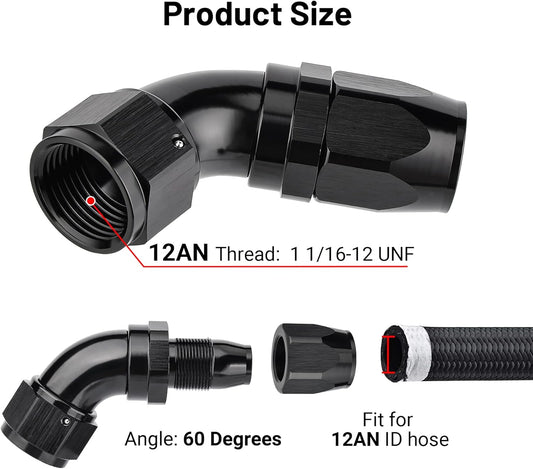 EVIL ENERGY 12AN 60 Degree One Piece Full Flow Hose End Fitting Swivel For CPE Braided Hose