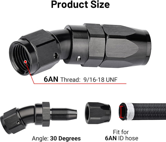 EVIL ENERGY 6AN 30 Degree One Piece Full Flow Hose End Fitting Swivel For CPE Braided Hose