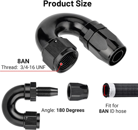 EVIL ENERGY 8AN 180 Degree One Piece Full Flow Hose End Fitting Swivel For CPE Braided Hose