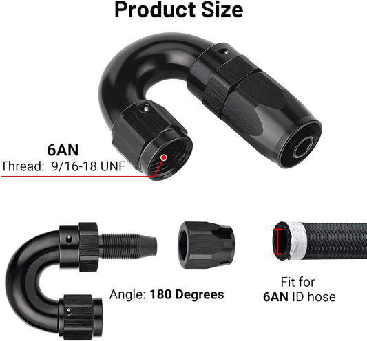 EVIL ENERGY 6AN 180 Degree One Piece Full Flow Hose End Fitting Swivel For CPE Braided Hose