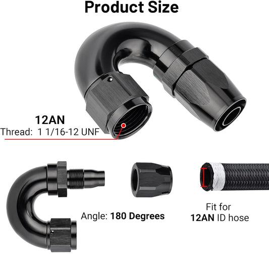 EVIL ENERGY 12AN 180 Degree One Piece Full Flow Hose End Fitting Swivel For CPE Braided Hose