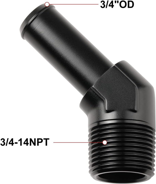 3/4 NPT Male to 3/4" Hose Barb Fitting Adapter 45 Degree Elbow Aluminum Black