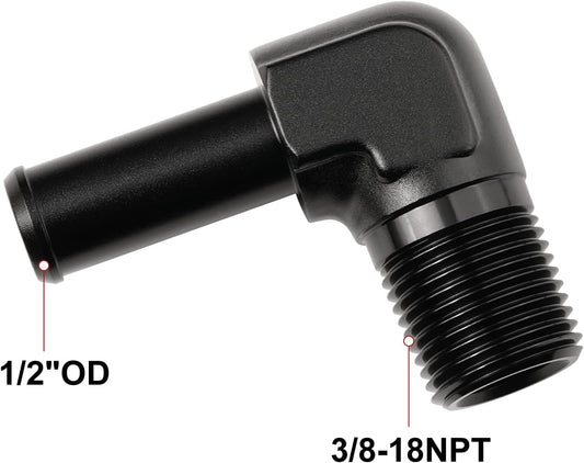 3/8 NPT Male to 1/2" Hose Barb Fitting Adapter 90 Degree Elbow Aluminum Black