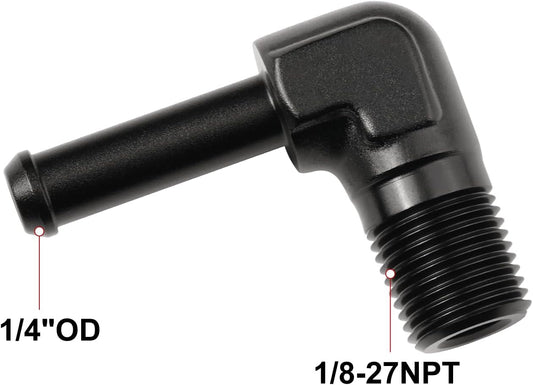 1/8 NPT Male to 1/4" Hose Barb Fitting Adapter 90 Degree Elbow Aluminum Black