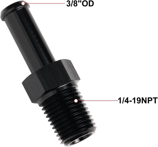 1/4 NPT Male to 3/8" Hose Barb Fitting Adapter Nipple Straight Aluminum Black