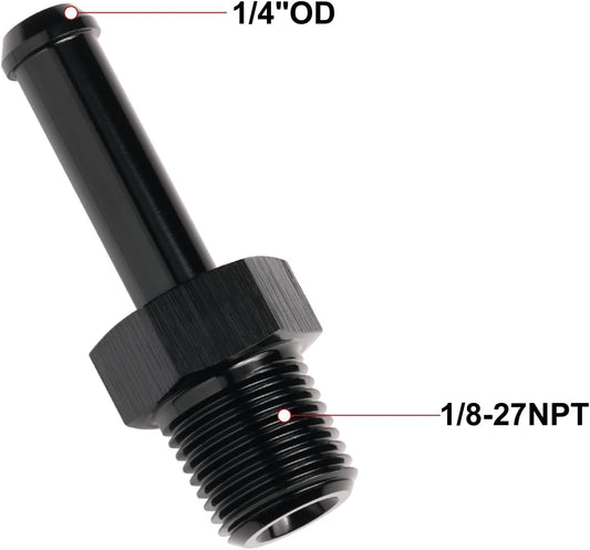 1/8 NPT Male to 1/4" Hose Barb Fitting Adapter Nipple Straight Aluminum Black