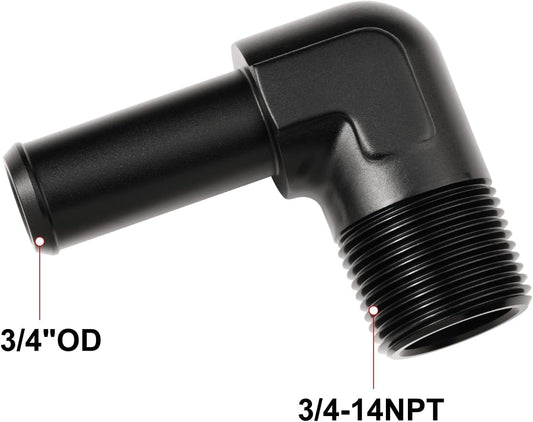 3/4 NPT Male to 3/4" Hose Barb Fitting Adapter 90 Degree Elbow Aluminum Black