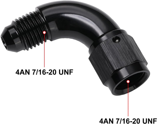 90 Degree 4AN Male to 4AN Female Swivel Full Flow Fitting Adapter Coupler Aluminum Black