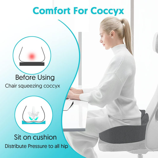 Seat Cushion for Office Chairs - Tailbone & Sciatica & Hip & Coccyx & Low Back Pain Relief Pillow - Memory Foam Pressure Relief Cushion for Long Sitting for Gaming, Compute, Desk Chair, Car Seat