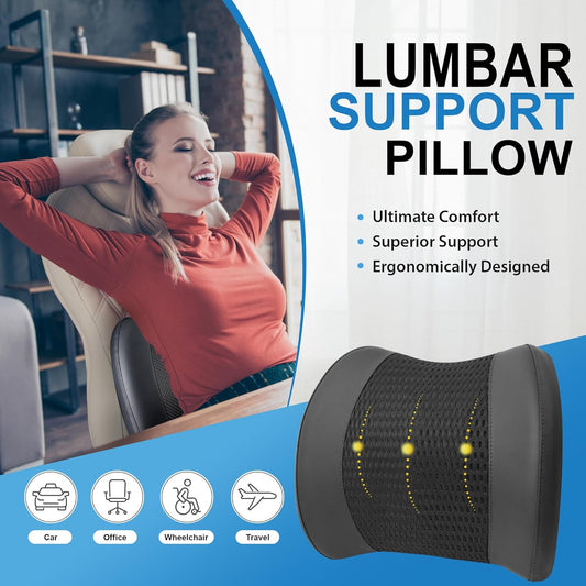 Memory Foam Lumbar Support Pillow Relieves Lower Back Pain for Driving, Chair Support for Car-Office Chair, Wheelchair -Matte Black