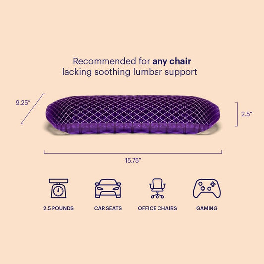 Purple Back Cushion | Pressure Reducing Grid Designed for Ultimate Comfort | Designed for Chairs, Gaming, and Travel | Made in The USA