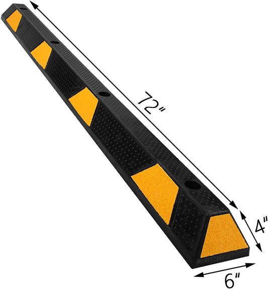 OrangeStar 72" Rubber Parking Curb, Heavy Duty Garage Floor Wheel Stopper w/Yellow Reflective Stripe for Car, Truck, Trailer, 2 Pack