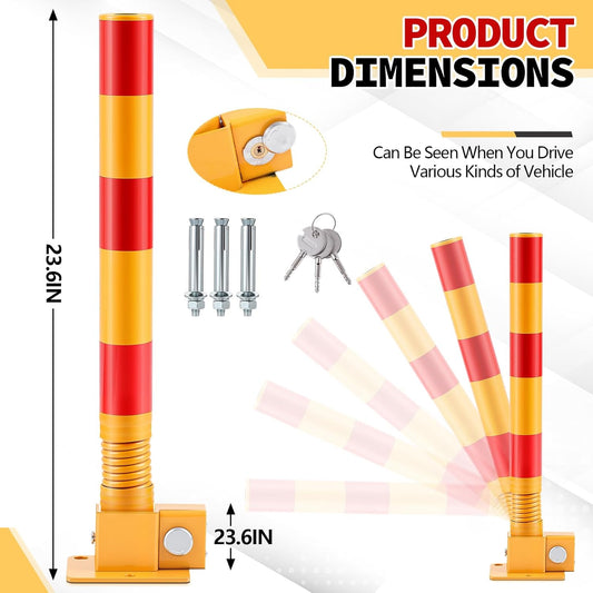 Zonon 2 Pcs Spring Parking Post Folding Heavy Metal Parking Barrier Lock Obstacle Pile with Warning Stripes Interceptor Bollard for Traffic-Sensitive Area Garage