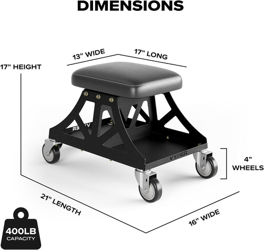 Vyper Low Pro Garage Stool with Removable Seat for Mechanics, Automotive, DIY - 400 lb Capacity Rolling Shop Chair (Black Seat, Black Frame)