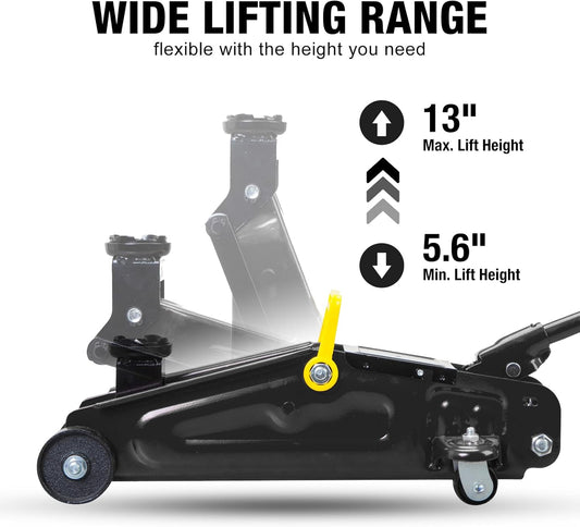 TONDA Low Profile Car Jack, 2.5 Ton (5,000 lb) Hydraulic Trolley Floor Jack for Garage, Home, Shop, Lifting Range 3.35" to 14.57", Orange