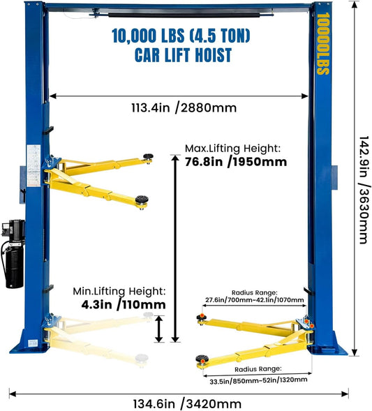 110V Two Post Car Lift 10,000 LBS Overhead Heavy Duty 2 Posts Auto Hoist Truck Lift for Garage