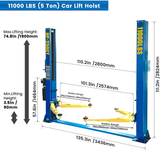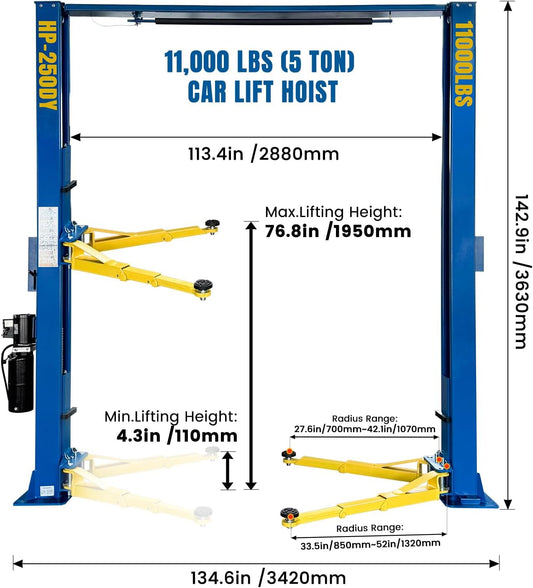 110V Two Post Car Lift 11,000 LBS Overhead Heavy Duty 2 Posts Auto Hoist Truck Lift for Garage w/ 36 Months Parts Replacement