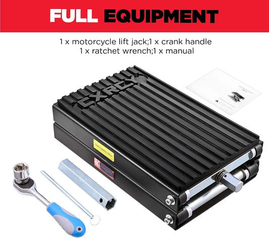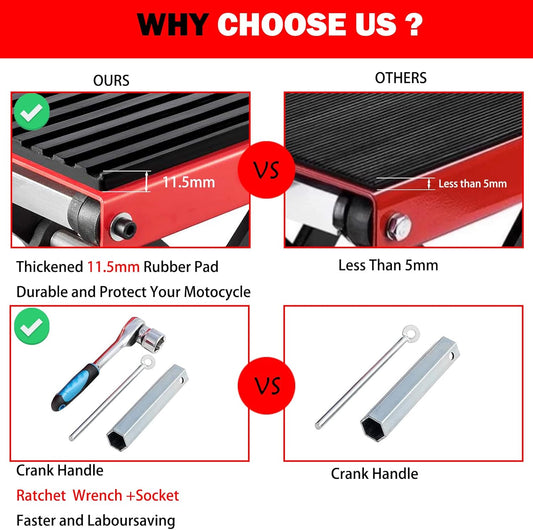 CXRCY 1200 LBS Motorcycle Lift Scissor Jack Upgraded Dirt Bike ATV Steel Motorcycle Hoist Stand with Ratchet Wrench,Crank Handle,Thickened Rubber Pad,Wide Deck