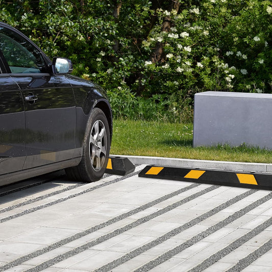 Pack of 2-72" Parking Stoppers for Garage, Heavy Duty Rubber Parking Curb with Reflective Stripe, Garage Floor Wheel Stopper for Car Vehicles Truck, Installation Kit Included