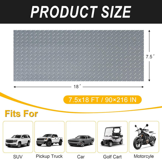 7.5x18 FT Garage Floor Mat, Flooring Roll with 20Pcs Tapes, 135 sqft Diamond Plate PVC Rubber Trailer Mat, Non-Slip Floor Mat for Garage, Warehouse, Gyms, Trailer, Pickup Truck (Grey)