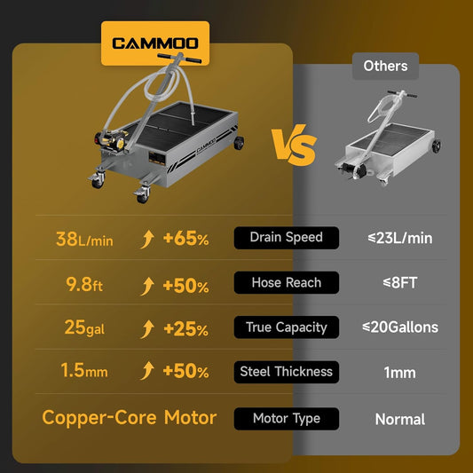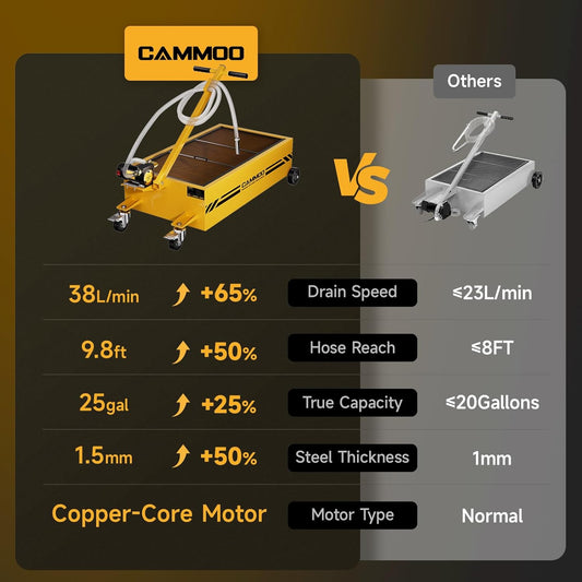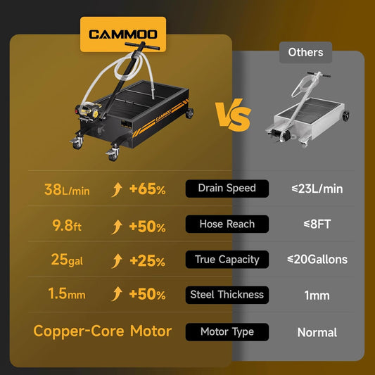 25 Gal Electric Oil Drain Pan, 110V High-Flow Pump, 9.8 FT Hose, 200 W Motor, 2 Locking Swivel Casters and 2 Directional Wheels Stable, Folding Handle, Heavy-Duty for Trucks, RVs, SUVs, Black