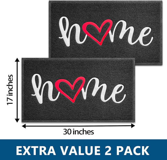 EARTHALL Door Mat 2-Pack Outside Inside Home Doormat 30"x17.5" Durable Floor Mat Non Slip Rug Ultra Absorb Mud Easy Clean Front Doormat for Garage, Entryway, Patio, High Traffic Areas, Black