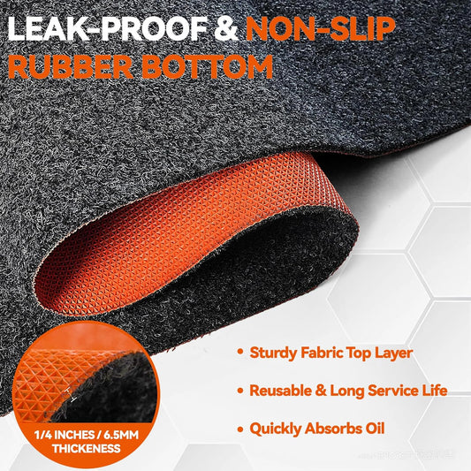 59" x 71" Heavy Duty Oil Spill Mat, Upgraded Garage Floor Mat for Under Car, 1/4" Waterproof Rubber Bottom Absorbs Oil Quickly, Washable, Reusable Oil Drip Leak Absorbent Pad