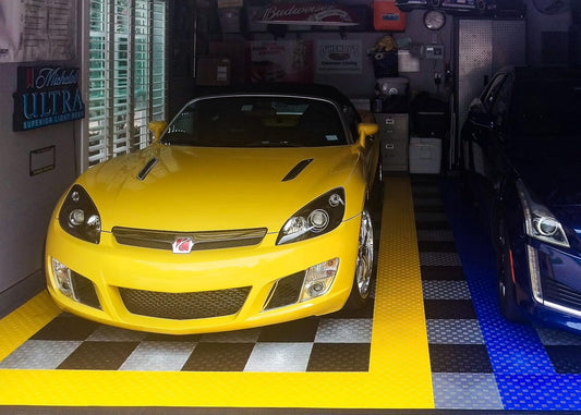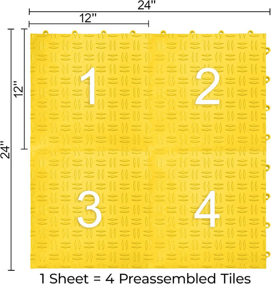 GarageTrac Diamond, Durable Interlocking Modular Garage Flooring Tile (12 Pack), Yellow