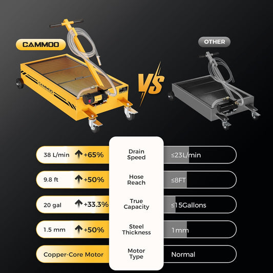 20 Gal Electric Oil Drain Pan, 110V High-Flow Pump, 9.8 FT Hose, 200 W Motor, 2 Locking Swivel Casters and 2 Directional Wheels Stable, Folding Handle, Heavy-Duty for Trucks, RVs, SUVs, Yellow