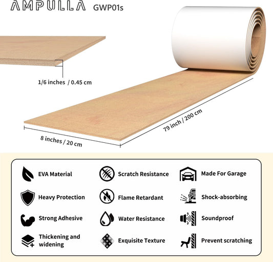 GWP01 Wood Grain Garage Wall Protector Car Door Protectors, Garage Accessories, Parking Stopper for Garage, Tool-Free, Designed in Germany (4.5mm Wood Grain)