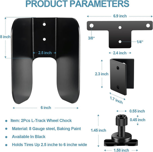 2 Pack L-Track Wheel Chock |L Track Motorcycle Wheel Chock for Dirt Bikes|L-Track Accessories for Enclosed Trailer L-Track Wall Mount Motorcycle Tire for Garages Trailers|L Track tie Down