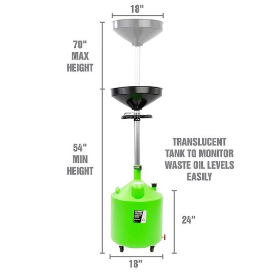 OEMTOOLS 87031 18 Gallon Oil Drain Container, Upright Adjustable Oil Drain Tank with Funnel, Waste Oil Container for Automotive Oil Changes