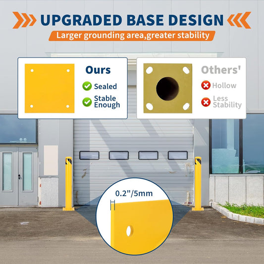 4.5x42 Inch Safety Bollard Post - Yellow Steel Bollard with Anchor Bolts (2-Pack) for Parking Lots, Walkways & Traffic Areas
