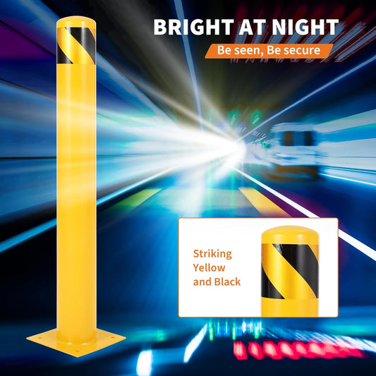 4.5x36 Inch Safety Bollard Post - Yellow Steel Bollard with Anchor Bolts (4-Pack) for Parking Lots, Walkways & Traffic Areas