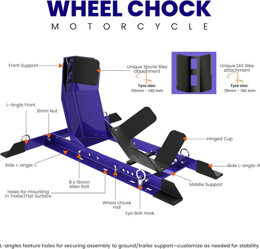 GRAND PITSTOP Universal Wheel Chock for Motorcycle Stand for Trailer Completely Adjustable Detachable Foldable Wheel Chock (Blue)